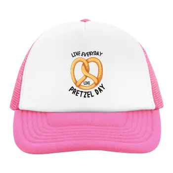 The office, Live every day like pretzel day, Adult Soft Trucker Hat with Pink/White Mesh (POLYESTER, ADULT, UNISEX, ONE SIZE)