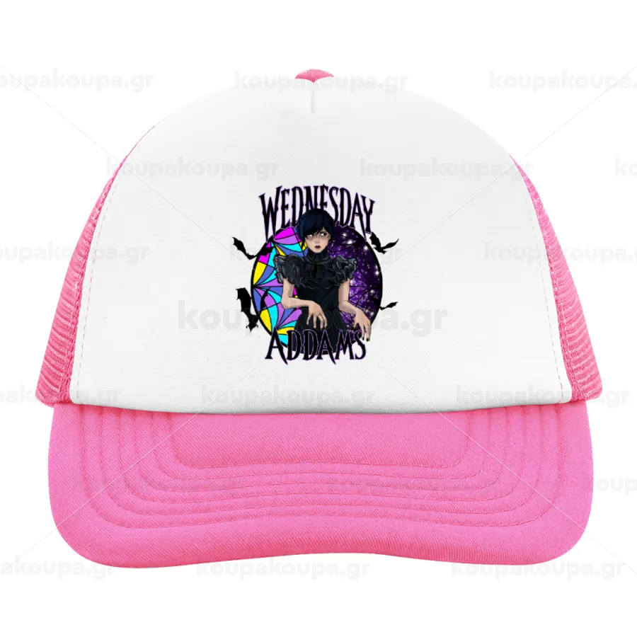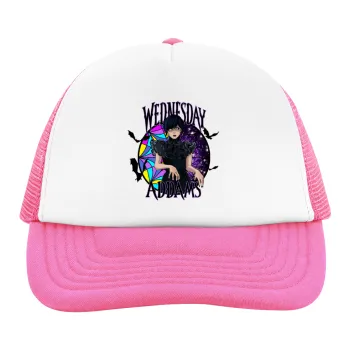 Wednesday Jenna Ortega, Adult Soft Trucker Hat with Pink/White Mesh (POLYESTER, ADULT, UNISEX, ONE SIZE)