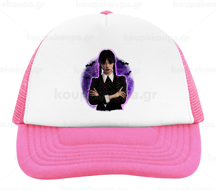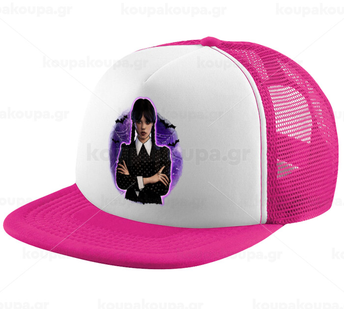 Wednesday moonlight, Adult Soft Trucker Hat with Pink/White Mesh (POLYESTER, ADULT, UNISEX, ONE SIZE)
