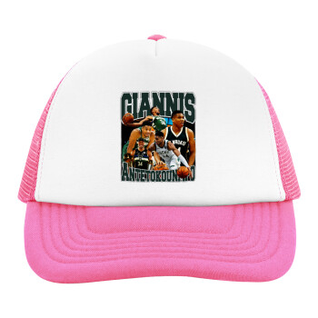 Giannis Antetokounmpo, Adult Soft Trucker Hat with Pink/White Mesh (POLYESTER, ADULT, UNISEX, ONE SIZE)