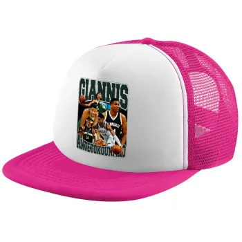 Giannis Antetokounmpo, Adult Soft Trucker Hat with Pink/White Mesh (POLYESTER, ADULT, UNISEX, ONE SIZE)