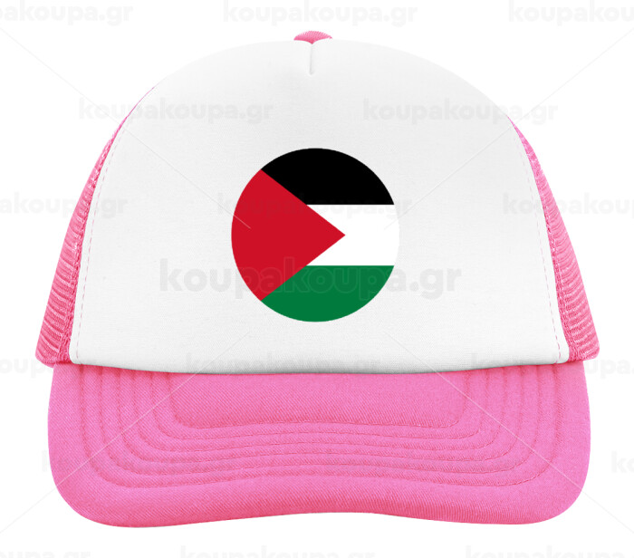 Palestine Flag, Adult Soft Trucker Hat with Pink/White Mesh (POLYESTER, ADULT, UNISEX, ONE SIZE)