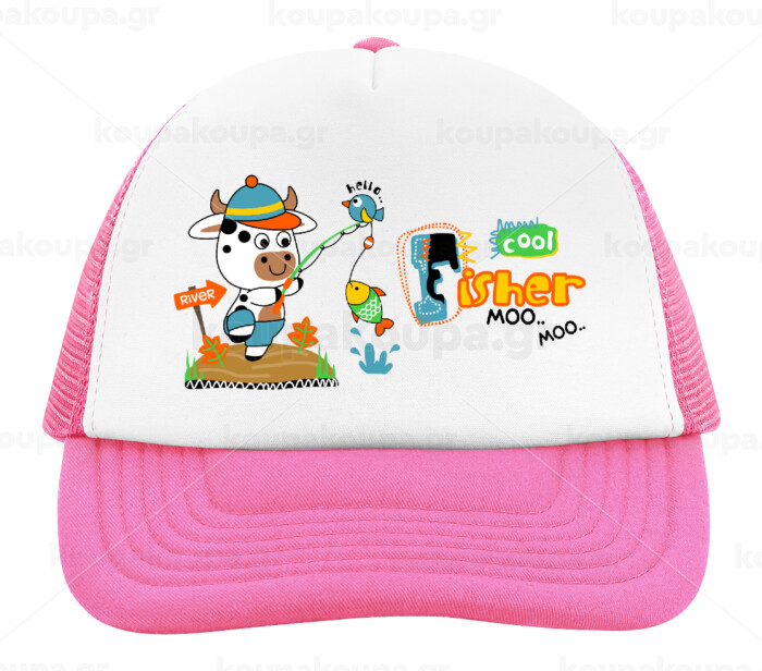 Kids Fisherman, Adult Soft Trucker Hat with Pink/White Mesh (POLYESTER, ADULT, UNISEX, ONE SIZE)