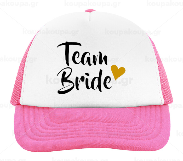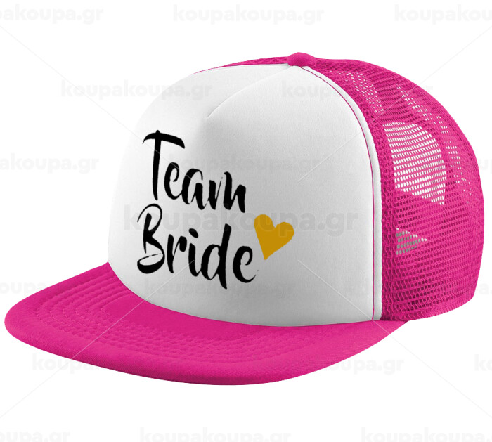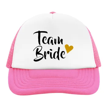 Team Bride, Adult Soft Trucker Hat with Pink/White Mesh (POLYESTER, ADULT, UNISEX, ONE SIZE)