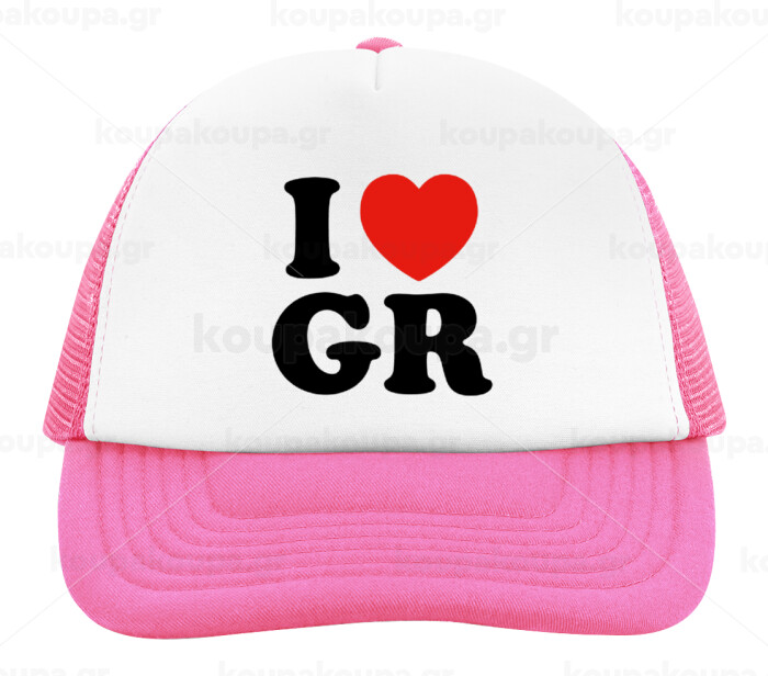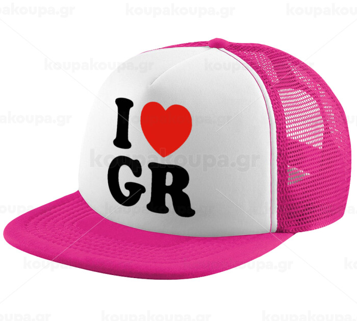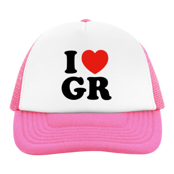 I Love GR, Adult Soft Trucker Hat with Pink/White Mesh (POLYESTER, ADULT, UNISEX, ONE SIZE)