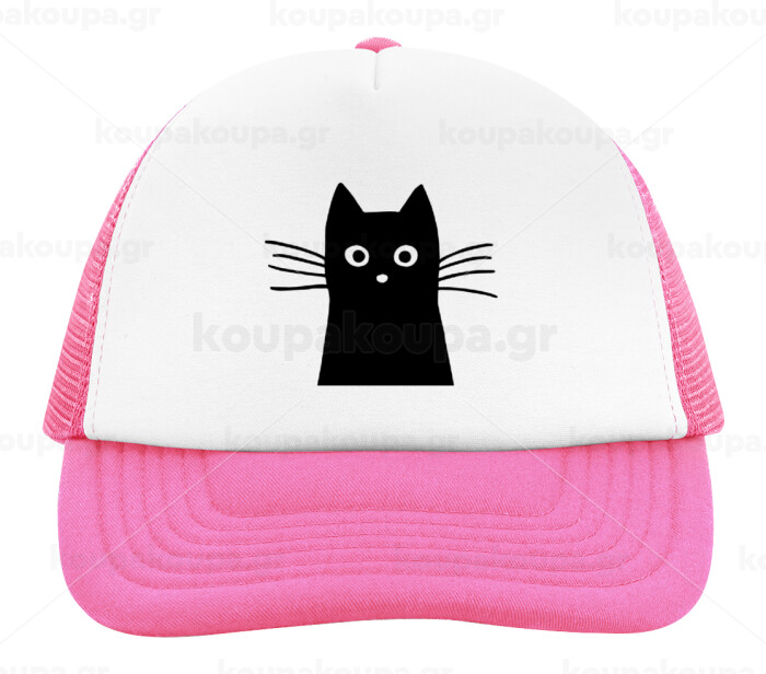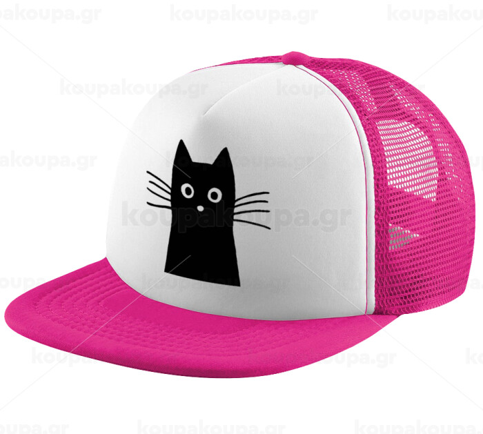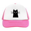 Black Cat, Adult Soft Trucker Hat with Pink/White Mesh (POLYESTER, ADULT, UNISEX, ONE SIZE)