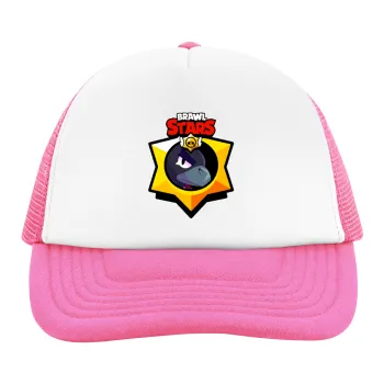 Brawl Stars Crow, Adult Soft Trucker Hat with Pink/White Mesh (POLYESTER, ADULT, UNISEX, ONE SIZE)