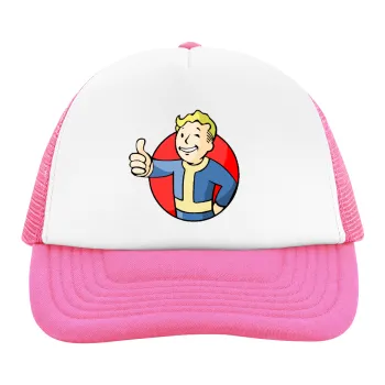 Fallout Vault Boy, Adult Soft Trucker Hat with Pink/White Mesh (POLYESTER, ADULT, UNISEX, ONE SIZE)