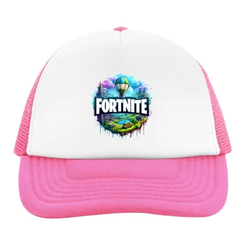 Fortnite land, Adult Soft Trucker Hat with Pink/White Mesh (POLYESTER, ADULT, UNISEX, ONE SIZE)