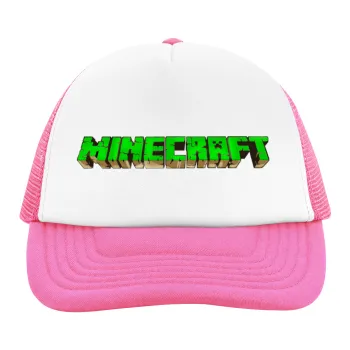 Minecraft logo green, Adult Soft Trucker Hat with Pink/White Mesh (POLYESTER, ADULT, UNISEX, ONE SIZE)