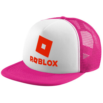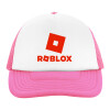 Roblox red, Adult Soft Trucker Hat with Pink/White Mesh (POLYESTER, ADULT, UNISEX, ONE SIZE)