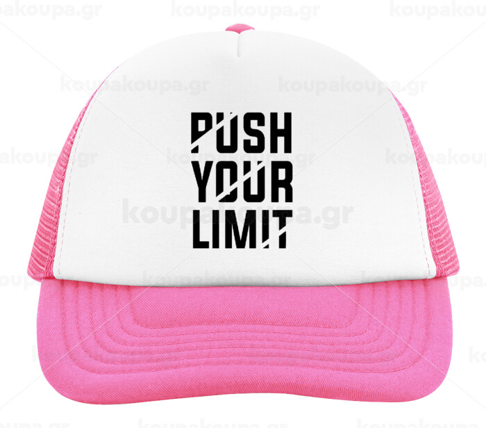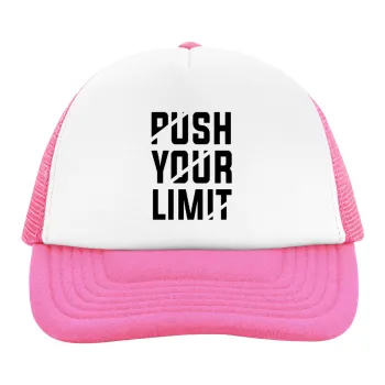 Push your limit, Adult Soft Trucker Hat with Pink/White Mesh (POLYESTER, ADULT, UNISEX, ONE SIZE)