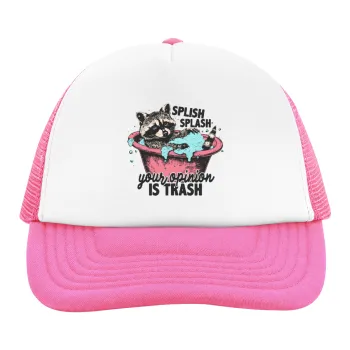 Splish splash your opinion is trash, Adult Soft Trucker Hat with Pink/White Mesh (POLYESTER, ADULT, UNISEX, ONE SIZE)