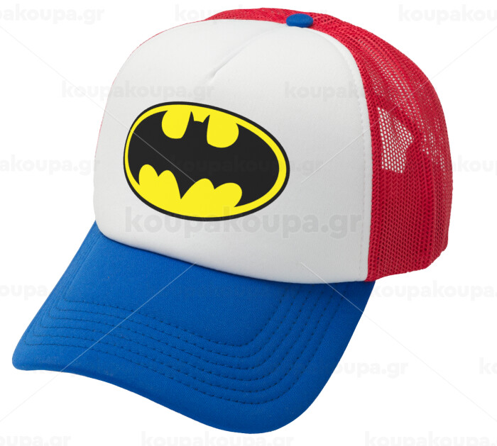 Batman, Adult Soft Trucker Hat with Red/Blue/White Mesh (POLYESTER, ADULT, UNISEX, ONE SIZE)