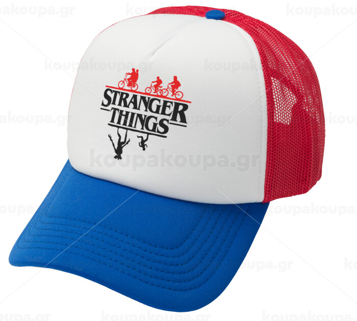 Stranger Things upside down, Adult Soft Trucker Hat with Red/Blue/White Mesh (POLYESTER, ADULT, UNISEX, ONE SIZE)