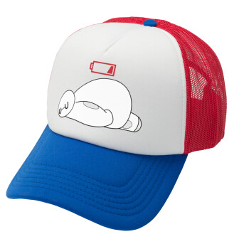 Baymax battery low, Adult Soft Trucker Hat with Red/Blue/White Mesh (POLYESTER, ADULT, UNISEX, ONE SIZE)