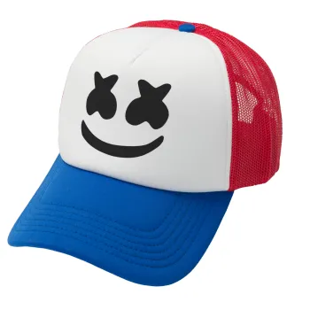 Marshmello, Adult Soft Trucker Hat with Red/Blue/White Mesh (POLYESTER, ADULT, UNISEX, ONE SIZE)
