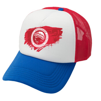 Olympiacos F.C., Adult Soft Trucker Hat with Red/Blue/White Mesh (POLYESTER, ADULT, UNISEX, ONE SIZE)