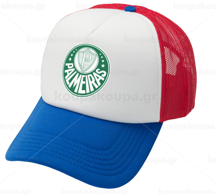 Palmeiras, Adult Soft Trucker Hat with Red/Blue/White Mesh (POLYESTER, ADULT, UNISEX, ONE SIZE)