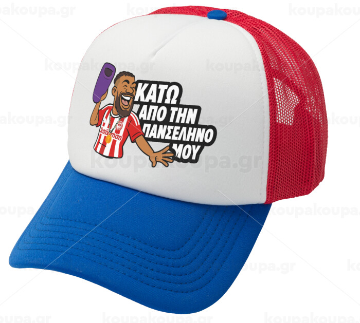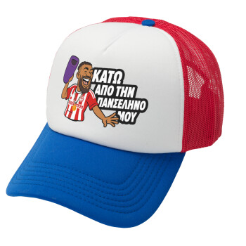 Ροντινέι, "ΚΑΤΩ ΑΠΟ ΤΗΝ ΠΑΝΣΕΛΗΝΟ ΜΟΥ!", Adult Soft Trucker Hat with Red/Blue/White Mesh (POLYESTER, ADULT, UNISEX, ONE SIZE)