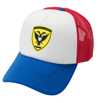 Ελληνικός Στρατός, Adult Soft Trucker Hat with Red/Blue/White Mesh (POLYESTER, ADULT, UNISEX, ONE SIZE)