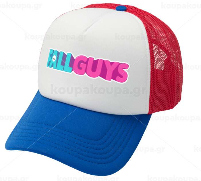 FALL GUYS, Adult Soft Trucker Hat with Red/Blue/White Mesh (POLYESTER, ADULT, UNISEX, ONE SIZE)