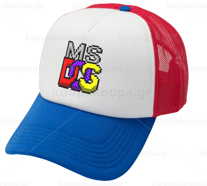 MsDos, Adult Soft Trucker Hat with Red/Blue/White Mesh (POLYESTER, ADULT, UNISEX, ONE SIZE)