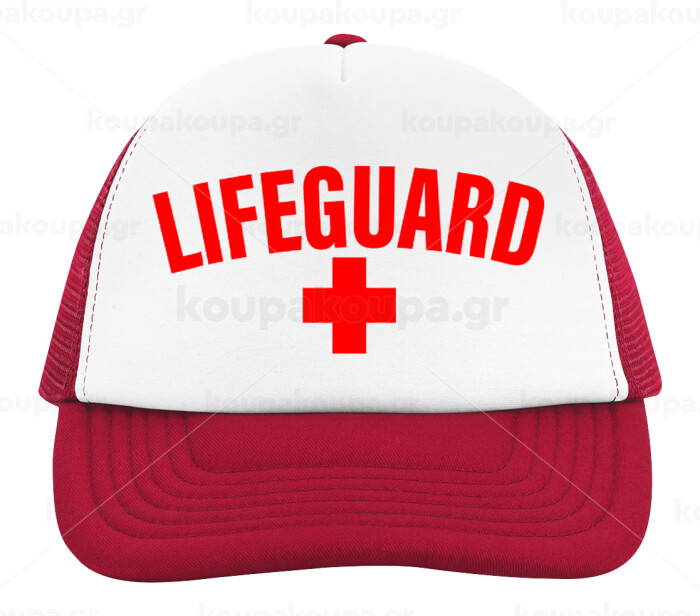 Lifeguard, Adult Soft Trucker Hat with Red/White Mesh (POLYESTER, ADULT, UNISEX, ONE SIZE)