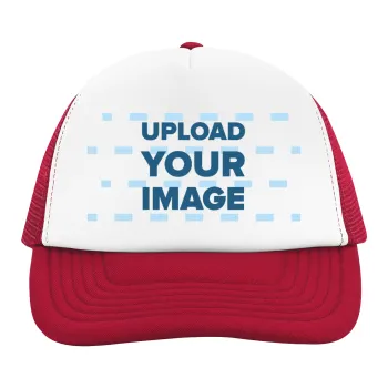 Upload your logo, Adult Soft Trucker Hat with Red/White Mesh (POLYESTER, ADULT, UNISEX, ONE SIZE)