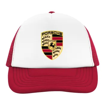 Porsche, Adult Soft Trucker Hat with Red/White Mesh (POLYESTER, ADULT, UNISEX, ONE SIZE)