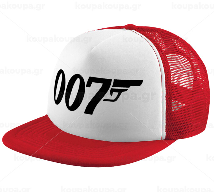 James Bond 007, Adult Soft Trucker Hat with Red/White Mesh (POLYESTER, ADULT, UNISEX, ONE SIZE)