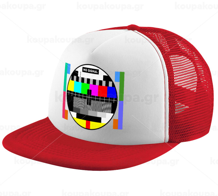 No signal, Adult Soft Trucker Hat with Red/White Mesh (POLYESTER, ADULT, UNISEX, ONE SIZE)