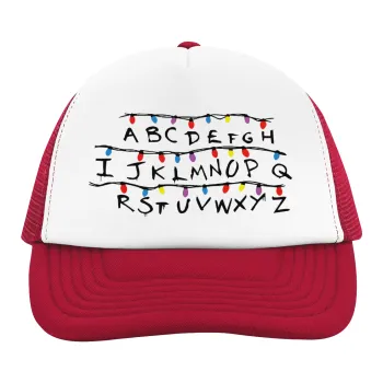 Stranger Things ABC, Adult Soft Trucker Hat with Red/White Mesh (POLYESTER, ADULT, UNISEX, ONE SIZE)