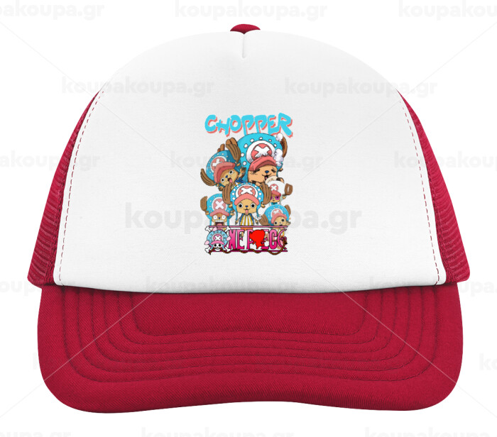 Chopper One Piece, Adult Soft Trucker Hat with Red/White Mesh (POLYESTER, ADULT, UNISEX, ONE SIZE)