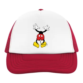 Mickey hide..., Adult Soft Trucker Hat with Red/White Mesh (POLYESTER, ADULT, UNISEX, ONE SIZE)