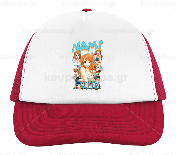 Nami One Piece, Adult Soft Trucker Hat with Red/White Mesh (POLYESTER, ADULT, UNISEX, ONE SIZE)