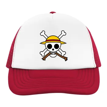 Onepiece skull, Adult Soft Trucker Hat with Red/White Mesh (POLYESTER, ADULT, UNISEX, ONE SIZE)