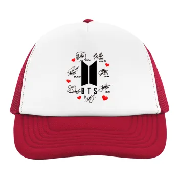 BTS signs, Adult Soft Trucker Hat with Red/White Mesh (POLYESTER, ADULT, UNISEX, ONE SIZE)