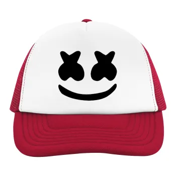 Marshmello, Adult Soft Trucker Hat with Red/White Mesh (POLYESTER, ADULT, UNISEX, ONE SIZE)