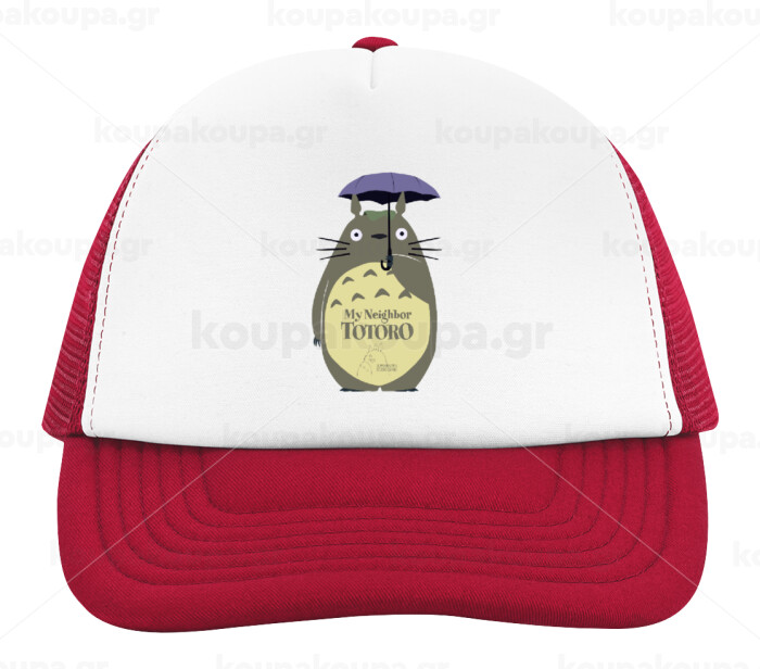 Totoro from My Neighbor Totoro, Adult Soft Trucker Hat with Red/White Mesh (POLYESTER, ADULT, UNISEX, ONE SIZE)