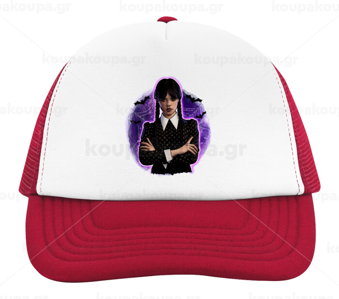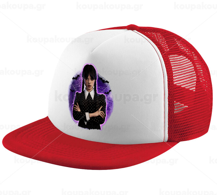Wednesday moonlight, Adult Soft Trucker Hat with Red/White Mesh (POLYESTER, ADULT, UNISEX, ONE SIZE)