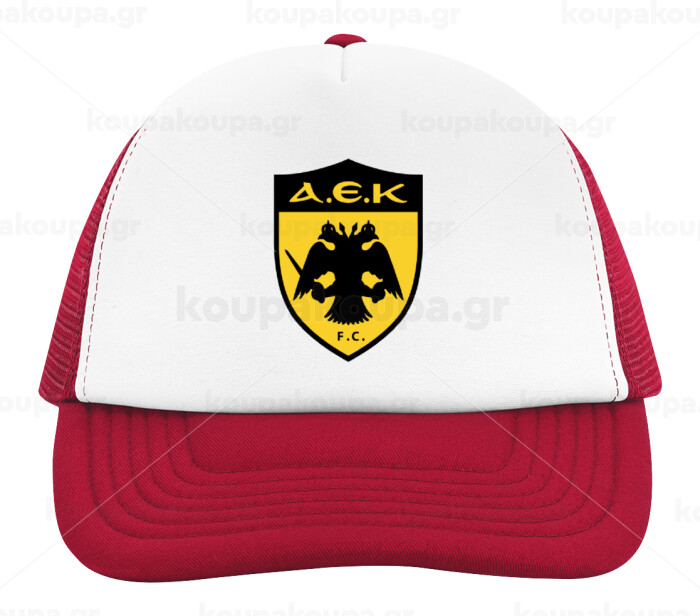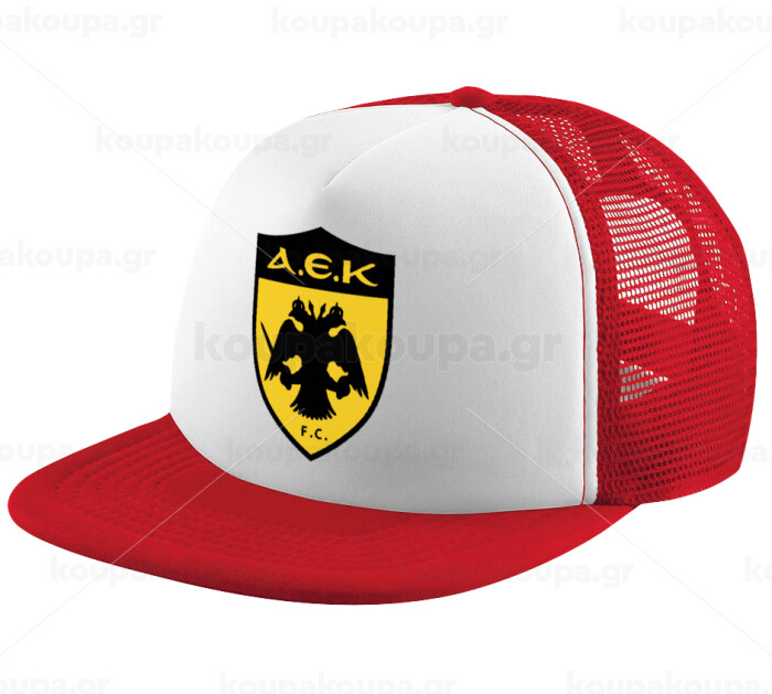 ΑΕΚ, Adult Soft Trucker Hat with Red/White Mesh (POLYESTER, ADULT, UNISEX, ONE SIZE)
