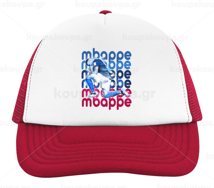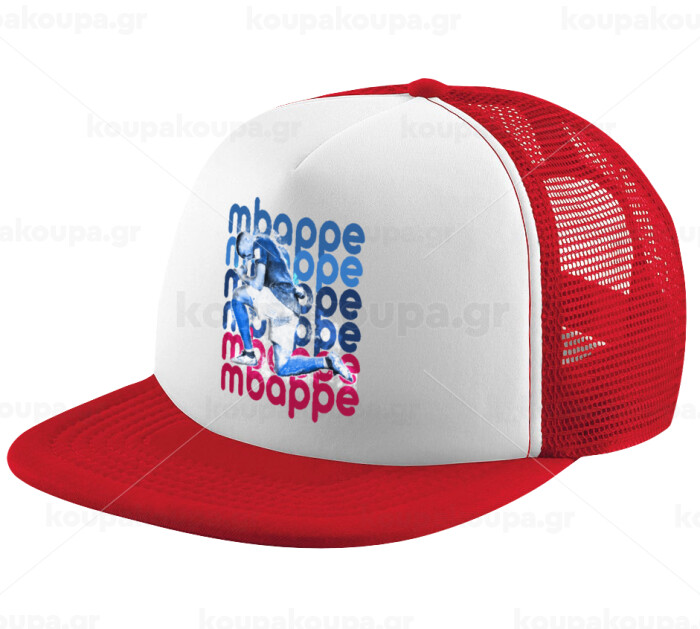 Kylian Mbappé, Adult Soft Trucker Hat with Red/White Mesh (POLYESTER, ADULT, UNISEX, ONE SIZE)