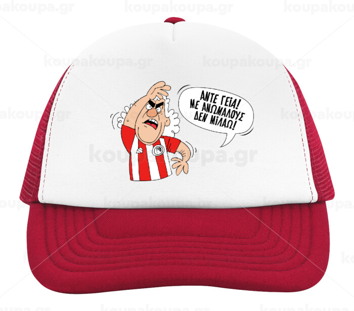 Τάκης, Άντε γεια, με ανώμαλους δεν μιλάω!, Adult Soft Trucker Hat with Red/White Mesh (POLYESTER, ADULT, UNISEX, ONE SIZE)