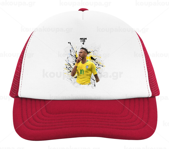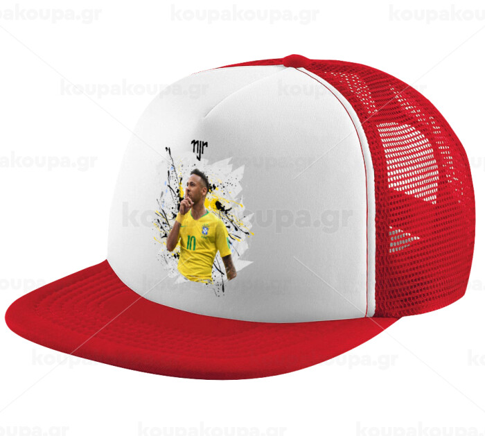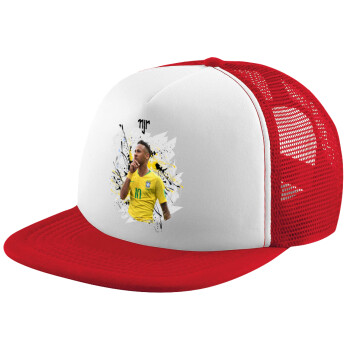 Neymar JR, Adult Soft Trucker Hat with Red/White Mesh (POLYESTER, ADULT, UNISEX, ONE SIZE)