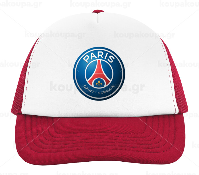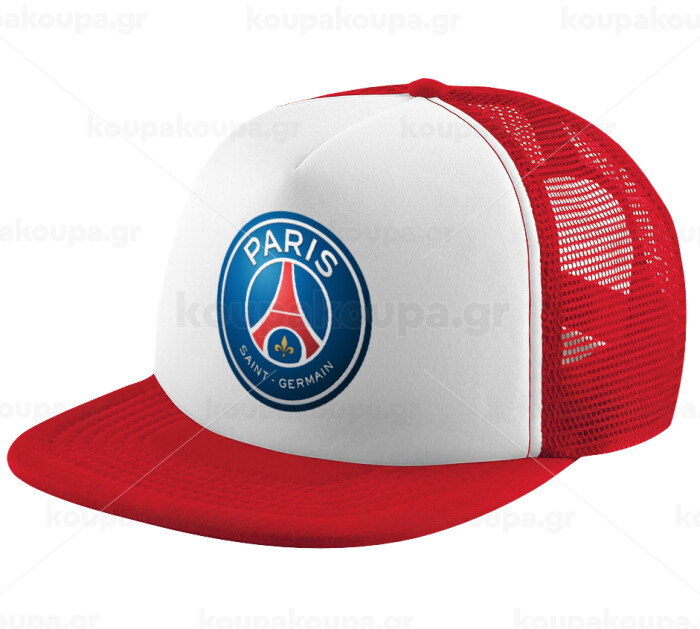 Paris Saint-Germain F.C., Adult Soft Trucker Hat with Red/White Mesh (POLYESTER, ADULT, UNISEX, ONE SIZE)