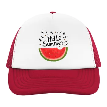 Summer Watermelon, Adult Soft Trucker Hat with Red/White Mesh (POLYESTER, ADULT, UNISEX, ONE SIZE)