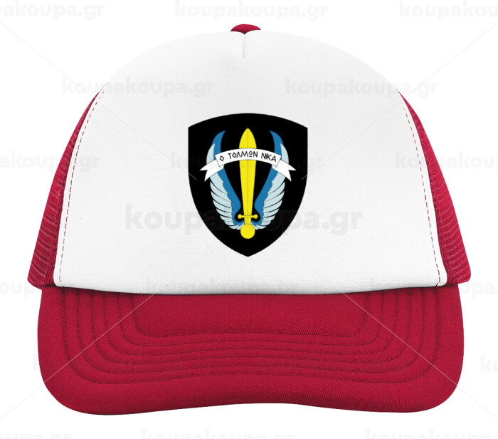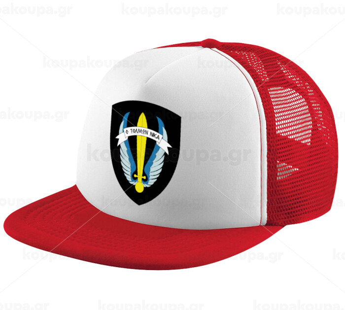 Έμβλημα Μονάδων Καταδρομών Ο Τολμων Νικα - Λοκ, Adult Soft Trucker Hat with Red/White Mesh (POLYESTER, ADULT, UNISEX, ONE SIZE)