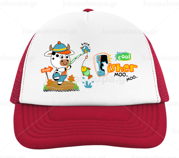 Kids Fisherman, Adult Soft Trucker Hat with Red/White Mesh (POLYESTER, ADULT, UNISEX, ONE SIZE)