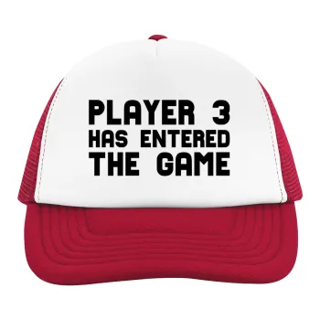 Player 3 has entered the Game, Adult Soft Trucker Hat with Red/White Mesh (POLYESTER, ADULT, UNISEX, ONE SIZE)